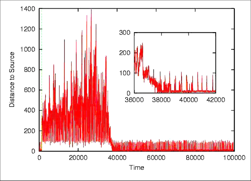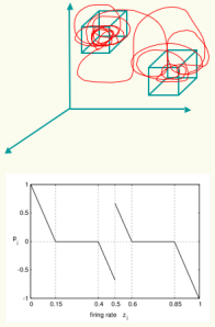 The Ashbyan ideas behind homeostatic adaptation may be combined with an enactive view on autonomy to investigate complex conceptual issues such as spontaneous generation of new goals and the formation of behavioural preferences. In this view, a preference is not located anywhere in the agent’s cognitive architecture, but it is rather a constraining of behaviour which is in turn shaped by behaviour. Based on this idea, a minimal model of behavioural preference was developed in collaboration with Hiro Iizuka. A simulated mobile agent is modelled with a plastic neurocontroller, which holds two separate high dimensional homeostatic boxes in the space of neural dynamics used to regulated synaptic plasticity (right). An evolutionary algorithm is used for creating a link between the boxes and the performance of two different phototactic behaviours. After evolution, the agent’s performance exhibits some important aspects of behavioural preferences such as durability and spontaneous transitions. These two properties through the mutual constraining of internal and external dynamics in the flow of alternating high and low susceptibility to environmental variations.