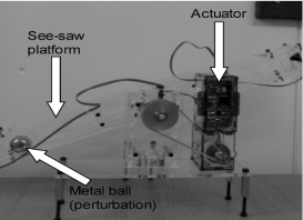 It is possible to test several of the above ideas in systems without segregated control mechanism capable of plastic adaptation. We have devised with Santosh Manicka such a real system (right) actuated by programmable springs (a real-time non-linear programmable actuation technology developed at Sussex by Bill Bigge that permits actuators to dynamically change their mechanical properties such as angle/force profiles, stiffness and damping as a function of speed, etc. thus allowing the online reconfiguration of actuator dynamics – and consequently control not by directive signals but by altering the “muscle” parameters very much like the equilibrium point theory we investigate here).