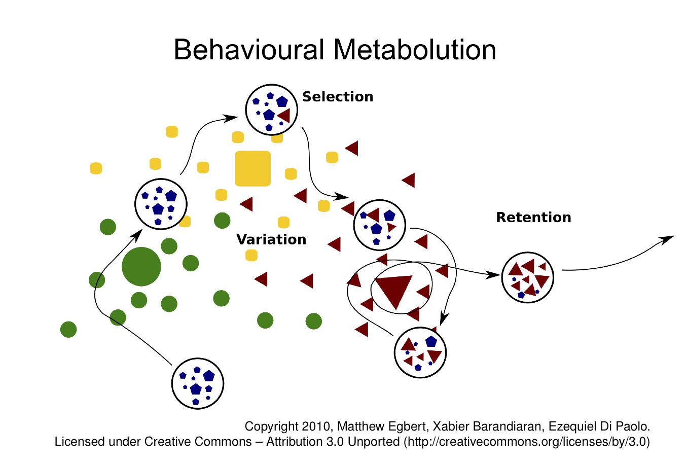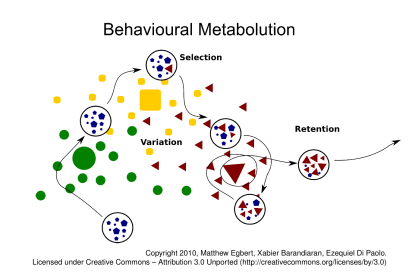 Egbert, M., Barandiaran, X. and Di Paolo, E. A. (2012) Behavioral Metabolution: The Adaptive and Evolutionary Potential of Metabolism-Based Chemotaxis, Artificial Life, 18:1, 1-25.